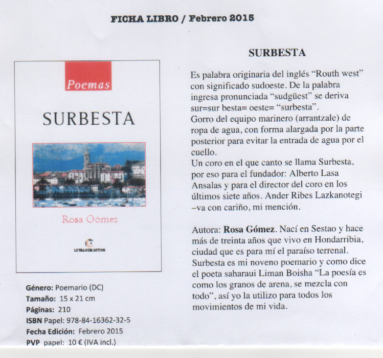 Presentación del libro de Rosa Gómez"SURBESTA" y RECITAL DE POESÍA con acompañamiento de guitarra