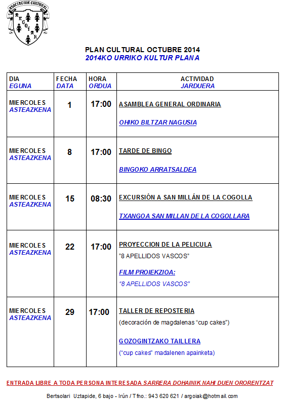 © Asociación Cultural Argoiak - 20304 - IRUN - Tel. 943.620.621