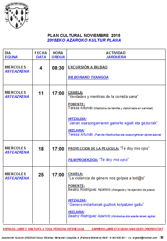 © Asociación Cultural Argoiak - 20304 - IRUN - Tel. 943.620.621